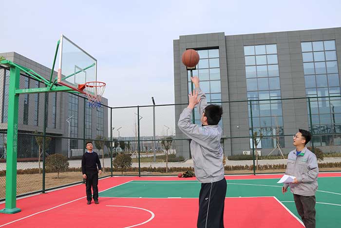 籃球場上“定點投籃”項目員工投籃的颯爽英姿。