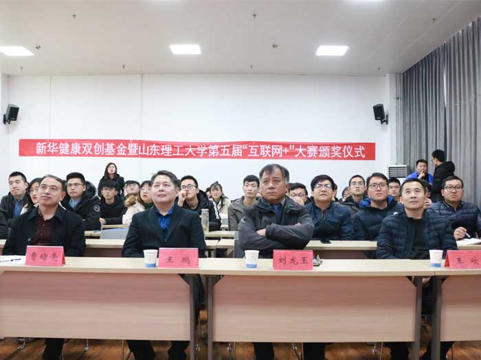 2019年12月26日下午,由山東理工大學(xué)創(chuàng)新創(chuàng)業(yè)學(xué)院主辦的新華健康雙創(chuàng)基金暨山東理工大學(xué)第五屆“互聯(lián)網(wǎng)+”大學(xué)生創(chuàng)新創(chuàng)業(yè)大賽頒獎(jiǎng)儀式于大紅爐眾創(chuàng)空間二樓路演中心舉行。出席此次頒獎(jiǎng)典禮的有山東新華健康產(chǎn)業(yè)有限公司技術(shù)總監(jiān)劉龍玉,校友辦副主任王鵬,創(chuàng)新創(chuàng)業(yè)學(xué)院副院長王欣、運(yùn)營實(shí)踐部部長曹緒亮以及在第五屆“互聯(lián)網(wǎng)+”大賽中取得優(yōu)異成績的部分團(tuán)隊(duì)。