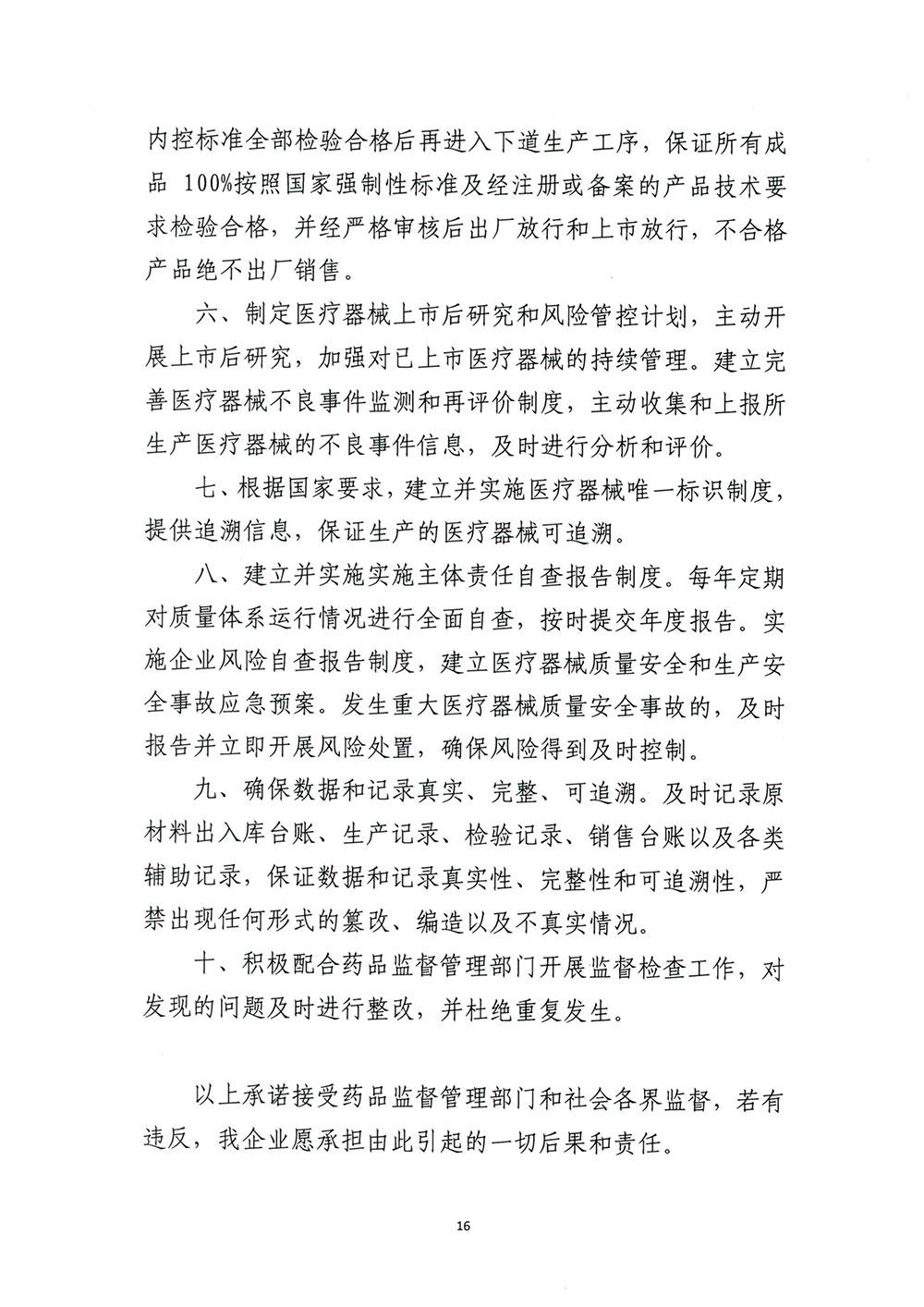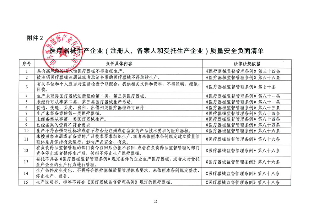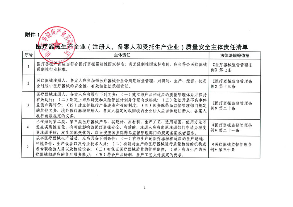 為進(jìn)一步督促醫(yī)療器械注冊(cè)人、備案人和受托生產(chǎn)企業(yè)落實(shí)生產(chǎn)環(huán)節(jié)質(zhì)量安全主體責(zé)任,山東省藥監(jiān)局依據(jù)《醫(yī)療器械監(jiān)督管理?xiàng)l例》《醫(yī)療器械生產(chǎn)監(jiān)督管理辦法》等法規(guī)規(guī)章,組織制定了醫(yī)療器械生產(chǎn)企業(yè)質(zhì)量安全主體責(zé)任清單、負(fù)面清單和醫(yī)療器械質(zhì)量安全主體責(zé)任承諾書。山東新華健康產(chǎn)業(yè)有限公司作為醫(yī)療器械生產(chǎn)企業(yè),積極響應(yīng)并對(duì)照清單事項(xiàng)抓好貫徹落實(shí),簽訂承諾書。主動(dòng)在企業(yè)官方網(wǎng)站公開承諾書,并在廠區(qū)內(nèi)顯著位置張貼,公布監(jiān)督電話,接受社會(huì)公眾和企業(yè)內(nèi)部監(jiān)督,切實(shí)履行主體責(zé)任,確保生產(chǎn)產(chǎn)品質(zhì)量安全。